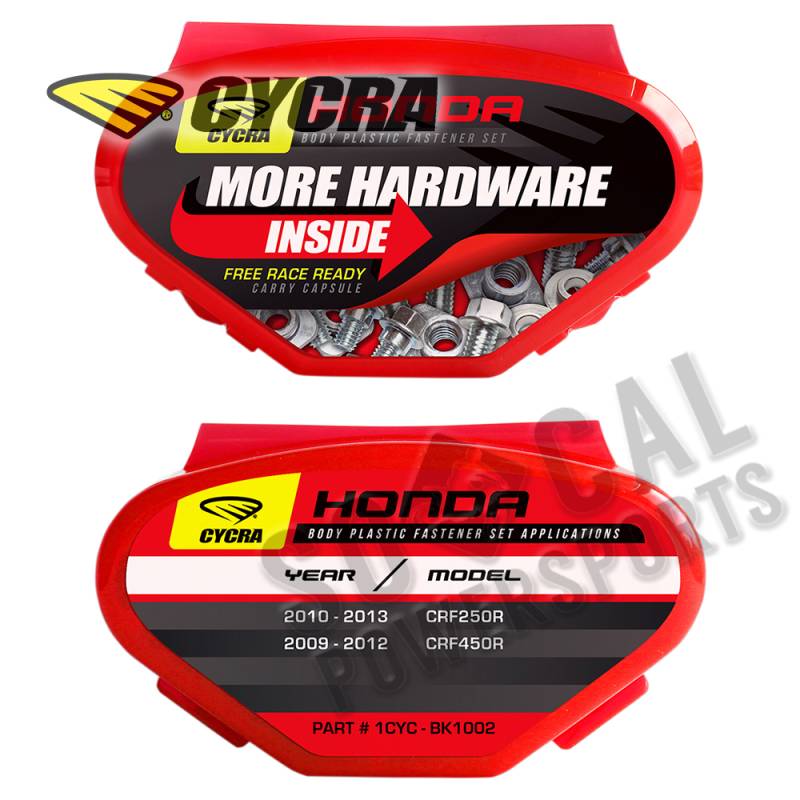 Includes bolts for front fender, rear fender, fork guards, side panels, front number plate, seat, radiator shrouds and air box on