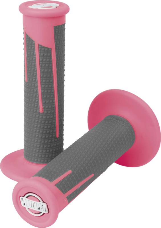 Using the latest in grip technology and molding techniques, the Clamp-On Grip System offers the comfort and control of traditional grips with the added advantage of quick, effortless installation. A design that eliminates the need for glue and tie-wire, yet ensures durable, slip-free performance. The super-slim clutch-side windowed core not only minimizes the outer grip diameter, but also delivers critical relief areas for the palm and fingertips. The result is increased impact and vibration damping over solid-core designs, leading to improved rider comfort and control. The grip surface utilizes an extra-supple, tacky compound that is seamlessly molded to the inner core. This provides maximum comfort and traction while alleviating palm abrasions and blistering. A firmer compound is used in the flange and end cap areas to resist crash damage and reduce wear.