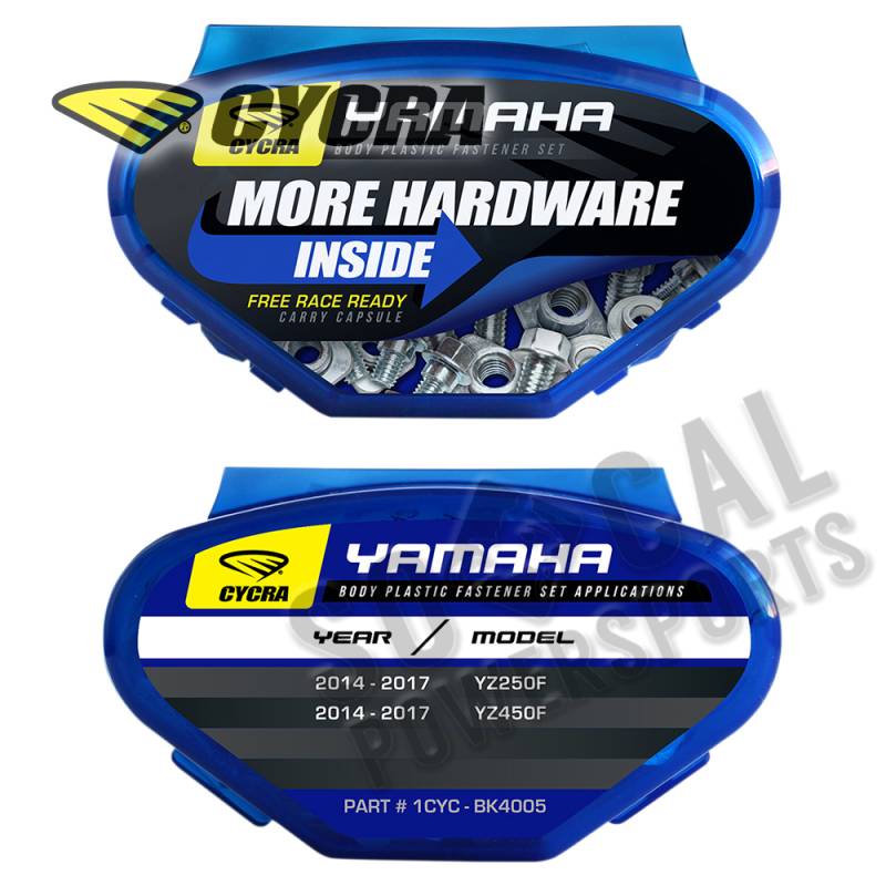 Includes bolts for front fender, rear fender, fork guards, side panels, front number plate, seat, radiator shrouds and air box on