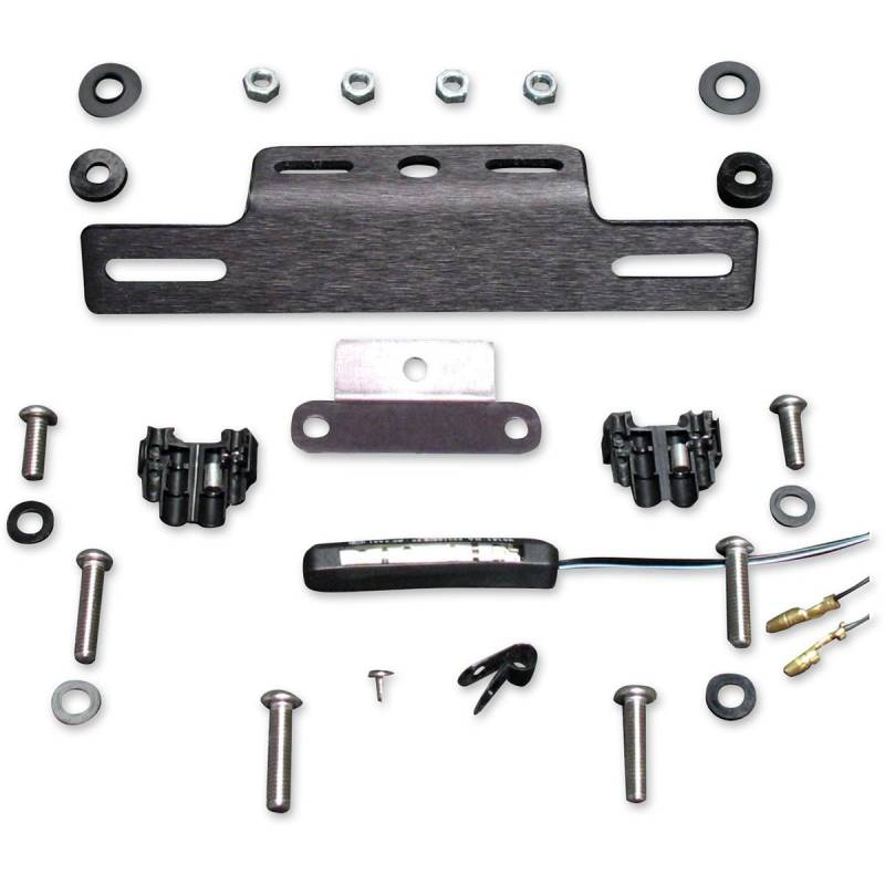 Standard kits include black anodized aluminum license plate bracket, anodized aluminum license tag bracket, LED license plate tag light with no-cut connectors and all necessary installation hardware