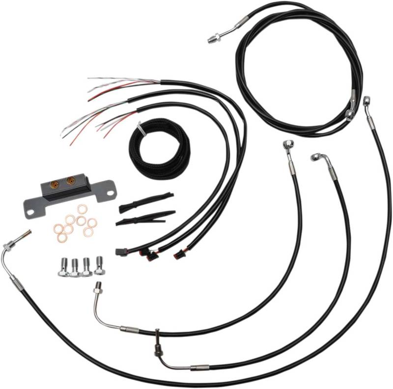 Kits include the correct length braided brake/ clutch lines and wire extensions to complete a handlebar swap