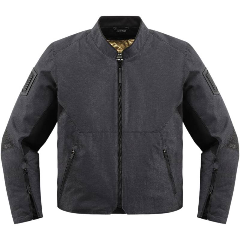 Durable textile chassis is grafted with drumdyed leather panels at elbows and other high-impact areas