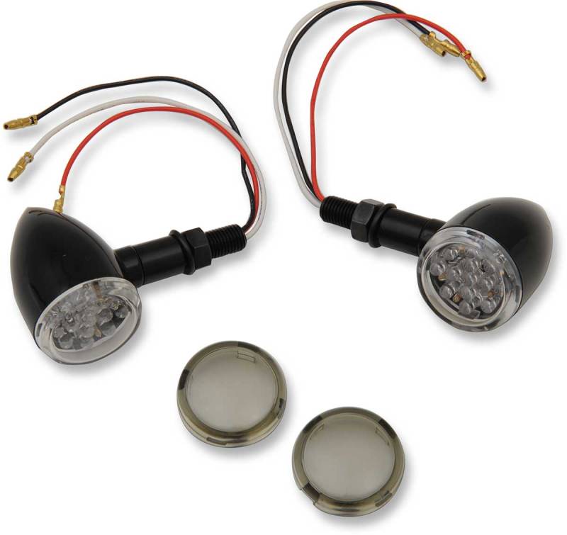 Drag Specialties LED Mini Deuce Marker Lights - Red LED with Clear/Smoke Lens - Gloss Black - 2040-1961