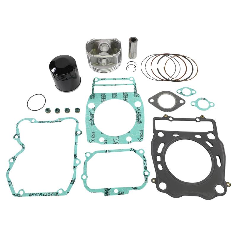 Includes pistons, rings, pins, clips, needle bearings, head and base gaskets and intake and exhaust gaskets and oil filter for 4-stroke models