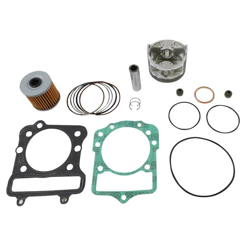 Includes pistons, rings, pins, clips, needle bearings, head and base gaskets and intake and exhaust gaskets and oil filter for 4-stroke models
