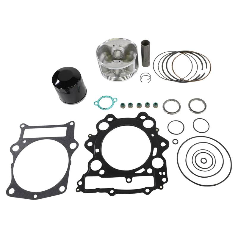 Includes pistons, rings, pins, clips, needle bearings, head and base gaskets and intake and exhaust gaskets and oil filter for 4-stroke models