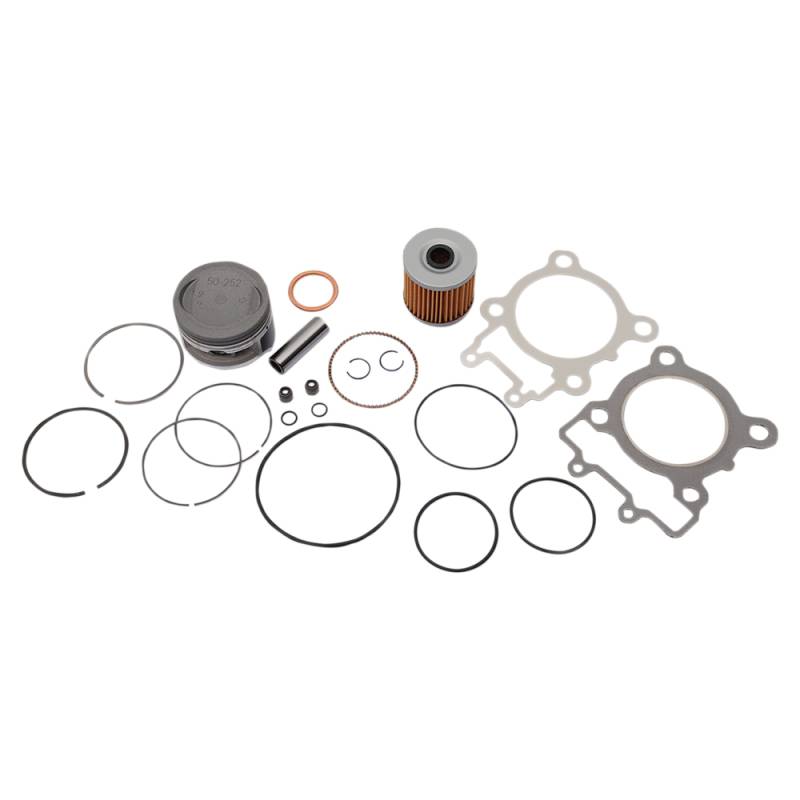 Includes pistons, rings, pins, clips, needle bearings, head and base gaskets and intake and exhaust gaskets and oil filter for 4-stroke models