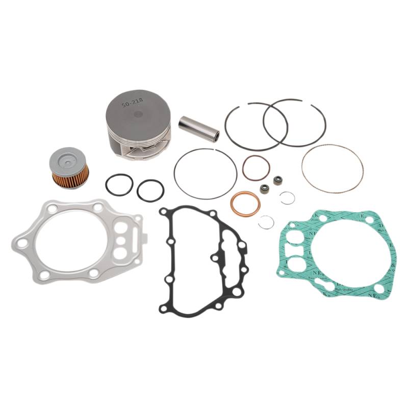 Includes pistons, rings, pins, clips, needle bearings, head and base gaskets and intake and exhaust gaskets and oil filter for 4-stroke models