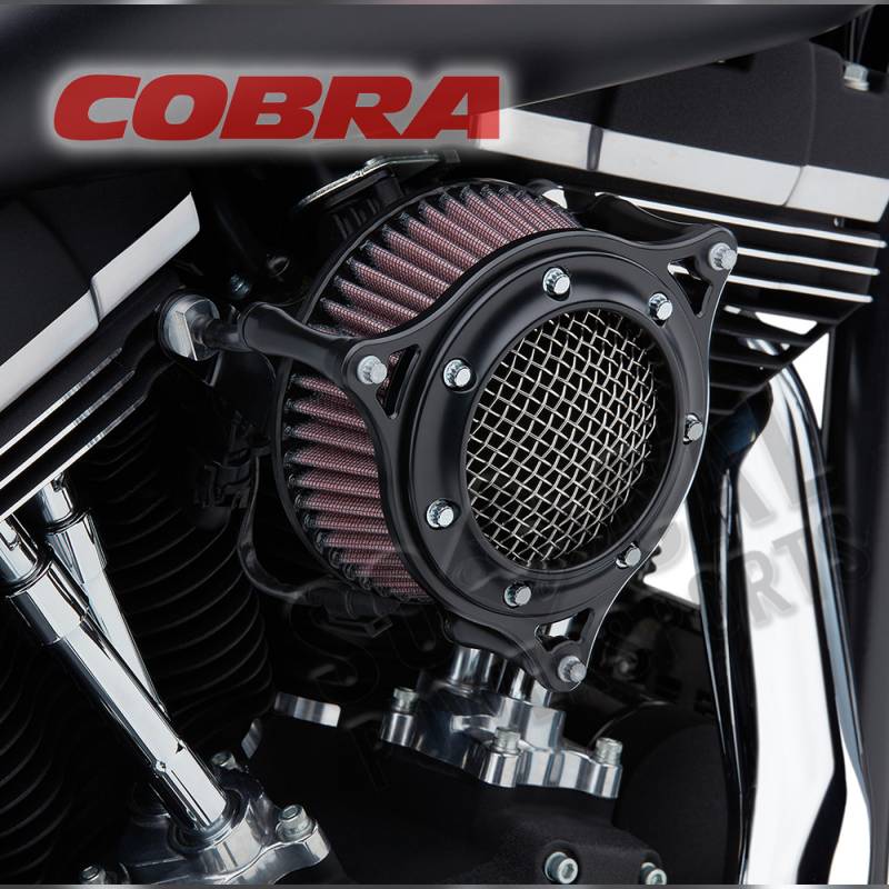 Same internal components as the Cobra Powrflo air intake, with the outside cover replaced with a machined aluminum industrial-looking frame that echoes Cobras popular Race