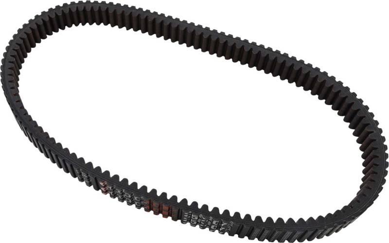 Carbon tensile cords are bonded to aramid fiber-loaded rubber with specially formulated adhesion gum; this results in increased side-load resistance, preventing belt distortion and edge-cord pullout