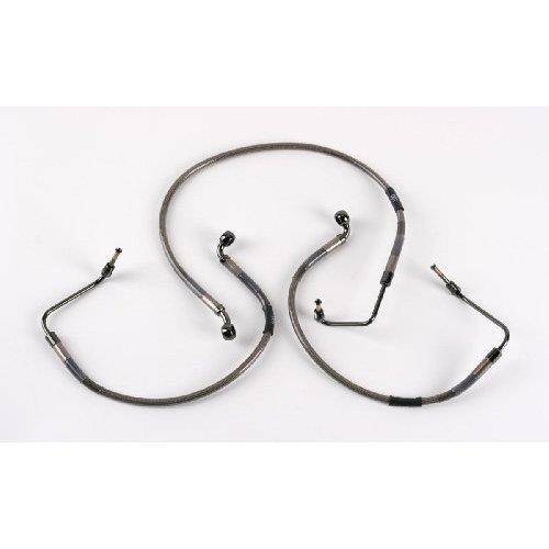 This eliminates the OEM three hose set-up and brake junction making brakeservice at the track simpler and improving brake performance. All two line racer kits come with extruded clear coat to protect against abrasion of painted surfaces.