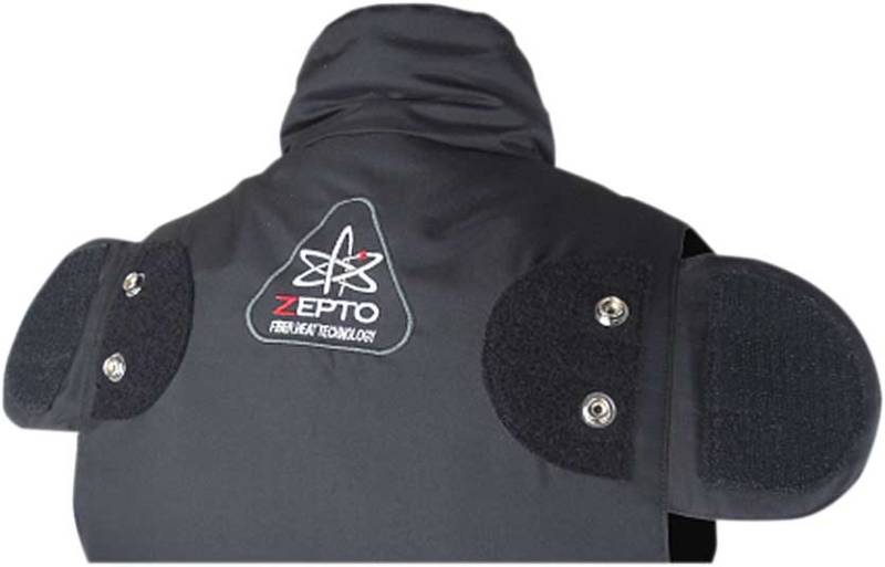 Snap-on electric connection on back of the vest for connecting gloves by using the snap ON/ OFF glove harness