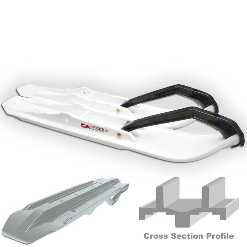 While other plastic skis use rigid, bolted-on metal mounting saddles, the patented C & A all-plastic saddle is molded into the ski, allowing the most flex and reverse flex around