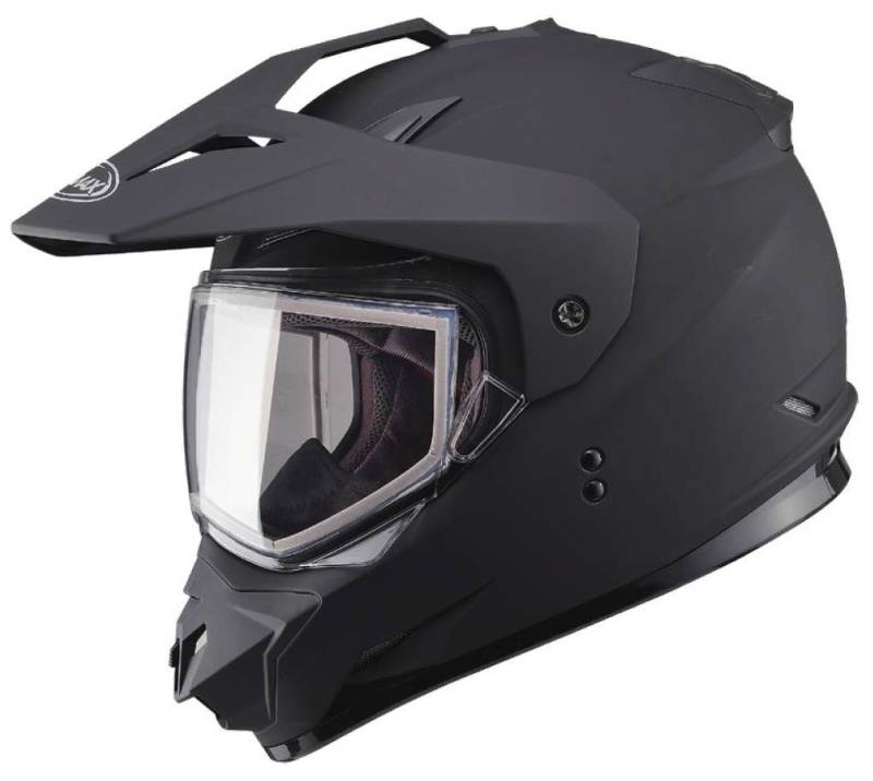 This GMAX dual sport helmet is truly an all purpose helmet. With the ability to convert to a visor-less configuration and accept goggles while still having the shield down. The GM-11S helmet is loaded with features and designs normally found on other high priced helmets, but delivered to you at a true GMAX competitive value.