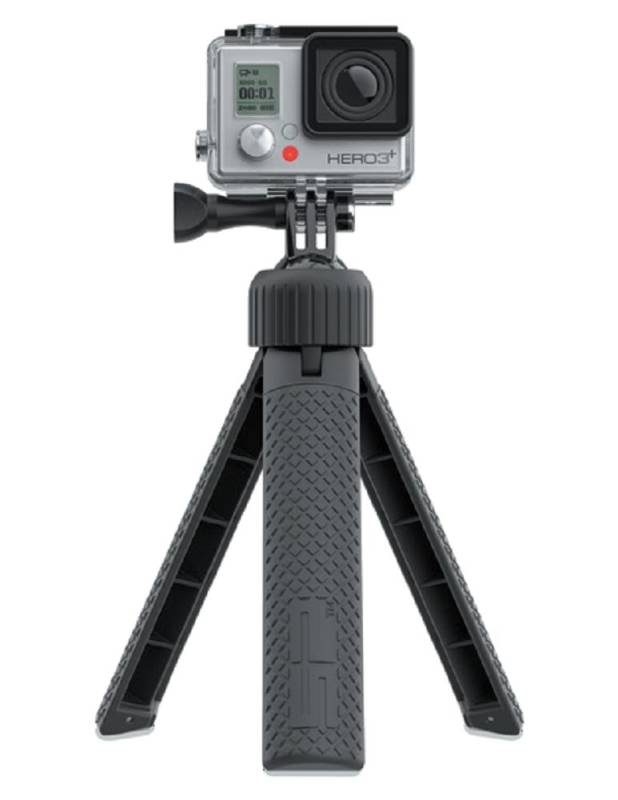 This small, lightweight action camera handle doubles as a tripod, making it the perfect travel companion