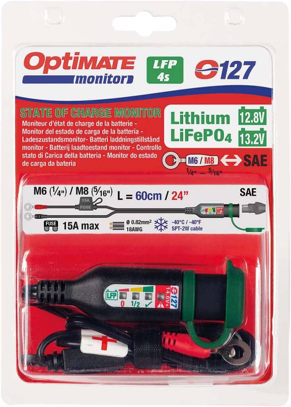 Monitor charge of your stored power sport vehicle lithium starter battery or confirm if the vehicle charging system is working correctly.