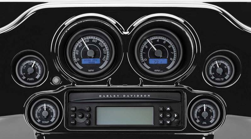 Whether you start with a 2-gauge set and build your favorite options or choose the 6 gauge pre-configured setup, you can display 7 gauge readings in the LCD Message Centers in the Speedometer and Tachometer (Speed, RPM, Volts, Fuel, Oil Pressure, Oil Temp, and Air Temp), as well as Miles to Empty and performance readouts(0-60 speed and time as well asmile speed and time).
