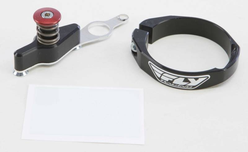 Our single button Fly Racing Holeshot Device All new for 2011 offering better mounting to the plastic fork guard with everyday common tools. The elongated groove is flawless in all types of conditions including mud. No aiming and hoping the pin locks into the ring like the competitors systems, just compress the forks push the pin and it is locked in. Your Holeshot is waiting for you!