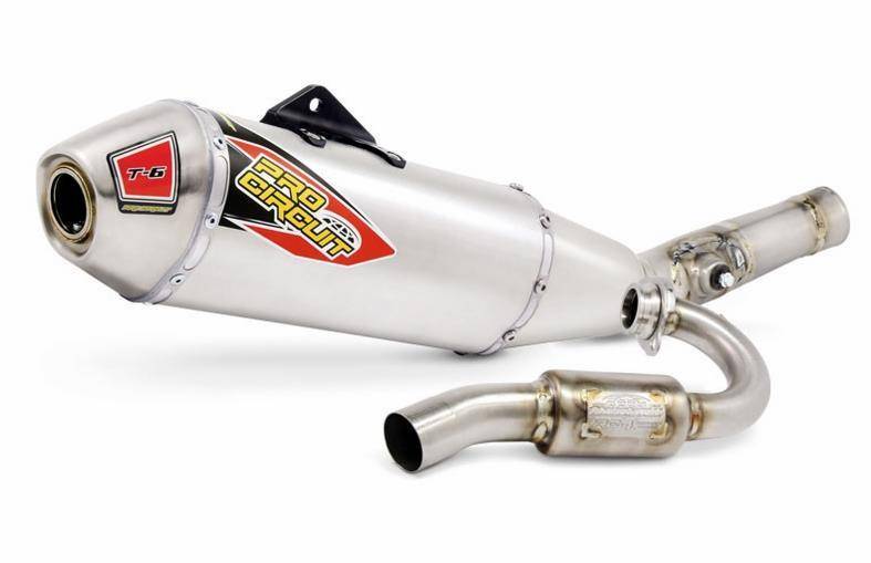 The T-6 Exhaust System offers maximum performance and is constructed of stainless steel throughout the head pipe and mid pipe. The T-6 is perfect for any closed-course or off-road racer looking for improved performance, durability and a professional look. More features offered by the T-6 is the ability to meet AMA amateur racing sound requirements and that it comes equipped with a United States Forest Service (USFS) approved spark arrestor making it easy to alternate between off-road and closed-course racing.