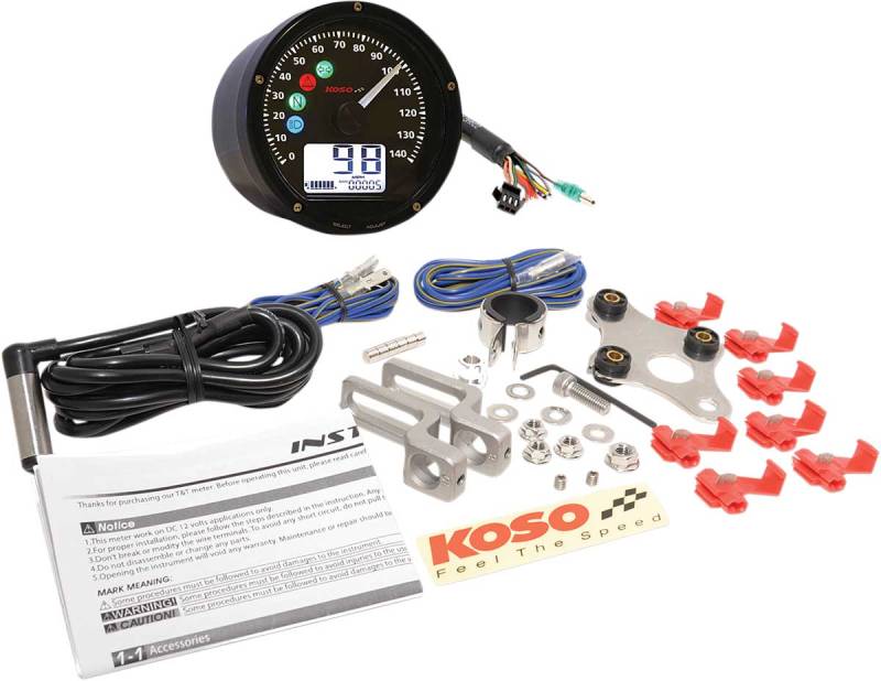 Many functions include speedometer, odometer, trip meter, fuel gauge, clock, voltage, shift light and indicator light