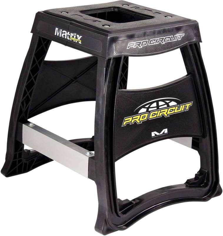 At 8.3 lb., the Pro Circuit Matrix Concepts stand is definitely at the front for one of the lightest, and most durable motorcycle stands on the market. Equipped with Pro Circuit logos, the Pro Circuit Matrix Concepts stand will be sure to add style to your pit area, and peace of mind knowing it can handle those heavy, standard-sized dirt bikes