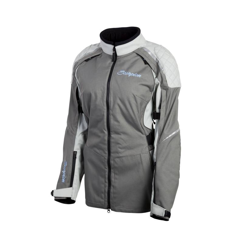 A form fitting, functional touring jacket for women who ride in all types of conditions and climates. Similar to our mens touring jackets in function, the difference is the fit and patterning. Large cargo pockets are internalized keeping with the refined external 'sthetic of this jacket. Multiple vents with YKK zippers for warmer climates. Abundant NightViz reflective panels and piping for increased nighttime visibility. Adjustment straps at, waist, hem, and arms for secure fit. Sac-Tec viscoelastic CE certified armor at knees and shoulders. The Jacket comes with a removable EverHeat thermal liner as well as a removable Airguard waterproof liner making this jacket suitable for all riding conditions