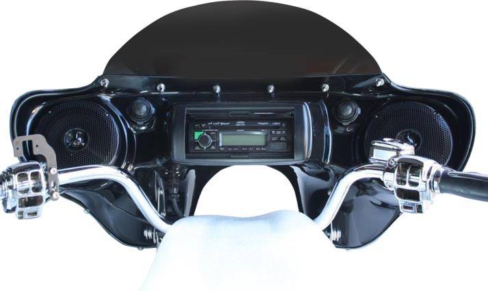 Sleeker and more compact version of Hoppe Industries original Quadzilla stereo receiver fairing; 5in. narrower and 4in. shorter without losing sound quality