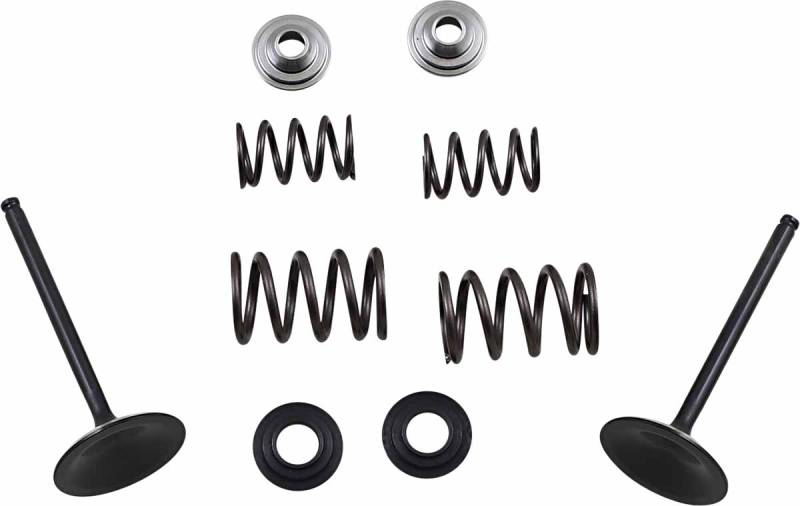 Includes forged one-piece stainless steel intake valves, wound chrome-silicon heat-treated wire valve springs, ultra-light titanium retainers and hardened steel bases