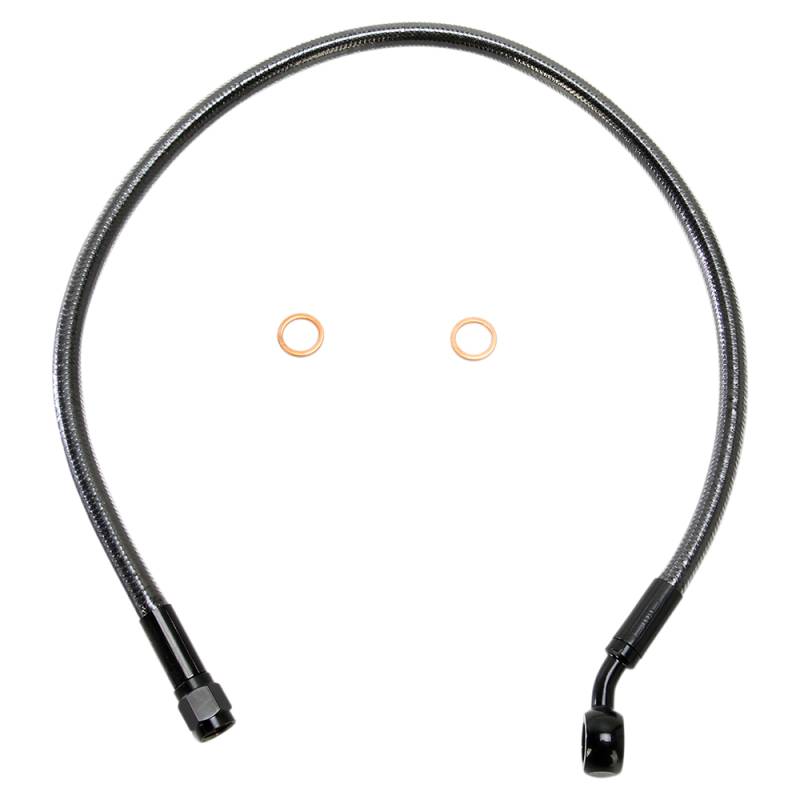 Note: Non-stock applications require taking a measurement for the upper brake line length and banjo angle to ensure correct fitment (see How to Order.)