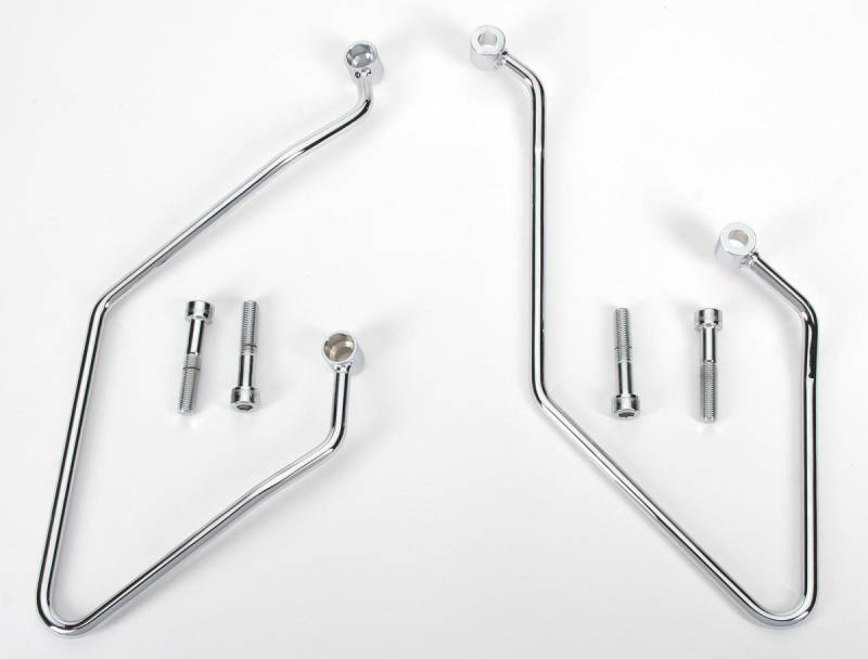 Saddlebag guards for metric cruisers help keep soft bags away from the wheels