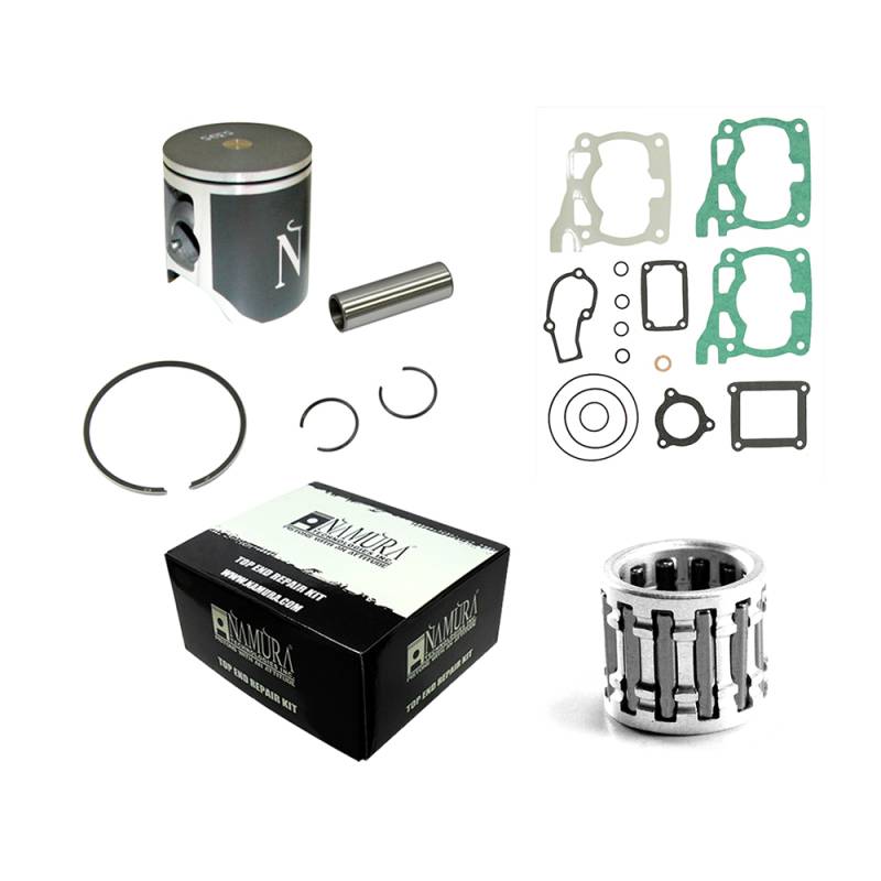 Top End kit includes: piston, rings, wrist pin, clips, top end bearing, and gasket kit