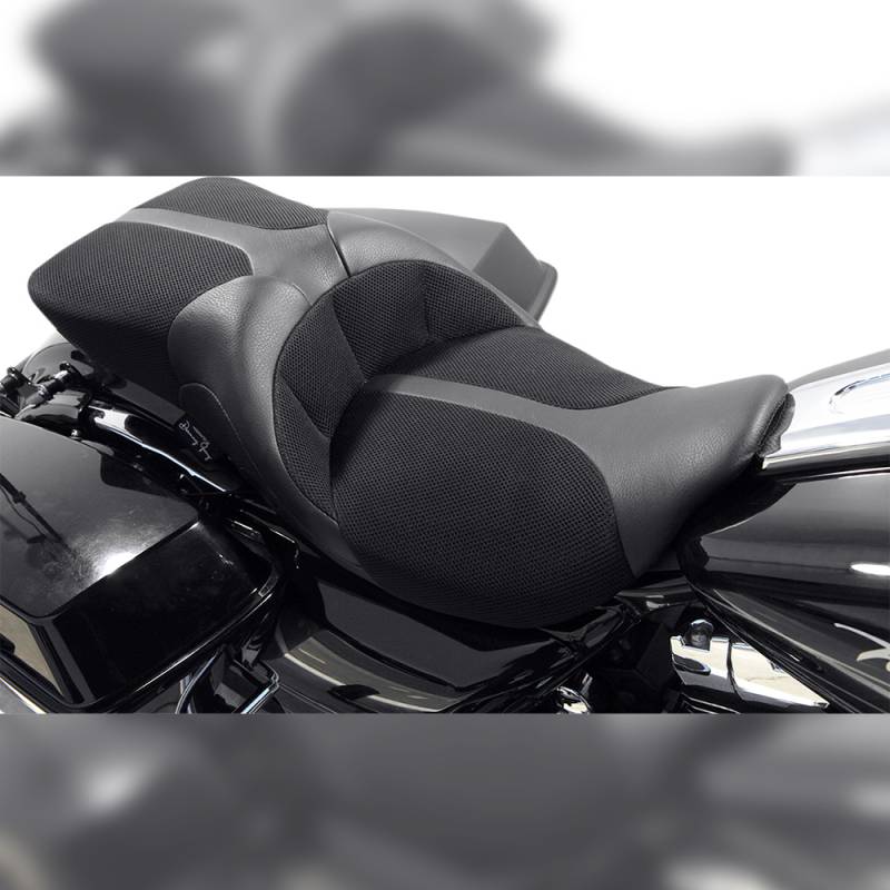 The TourIST 2-Up is a mid-touring style with a standard sized saddle and good back support for the rider seeking a traditional seat for long haul adventures