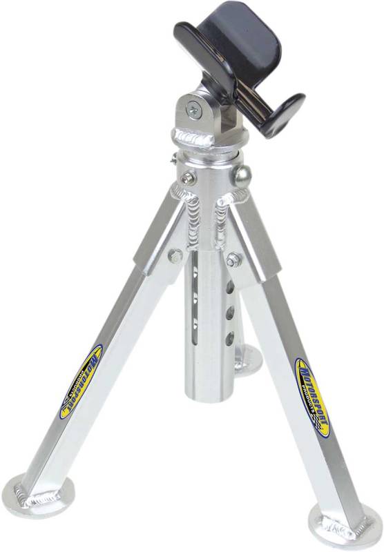 Safer and more secure method for holding a bike in a leaning position; resting bikes on MX stands can tear grips and damage expensive upper fork tubes