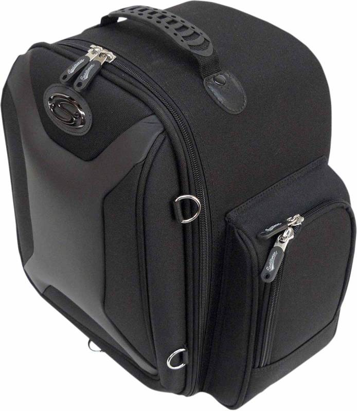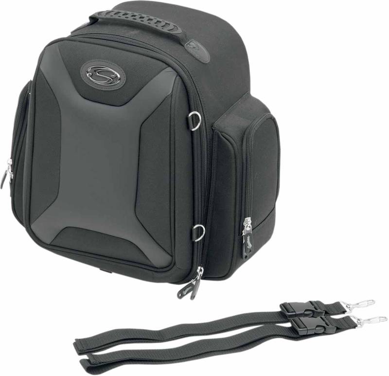 Sissy bar bag mounting is simple and quick, using Saddlemens adjustable backrest sleeve that conforms to the width of your sissy bar or pad, and its shape or taper