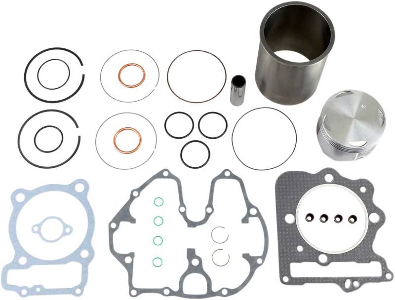 2-stroke kits are packaged complete with wear resistant Moly2000centrifugally spun-cast cylinder sleeve, matching pro-forged or pro-casted piston kit, wrist pin bearing and complete top-end gasket set
