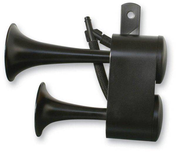 Waterproof dualtrumpet air horns replace stock horn and give a loud warning blast of 128 dB