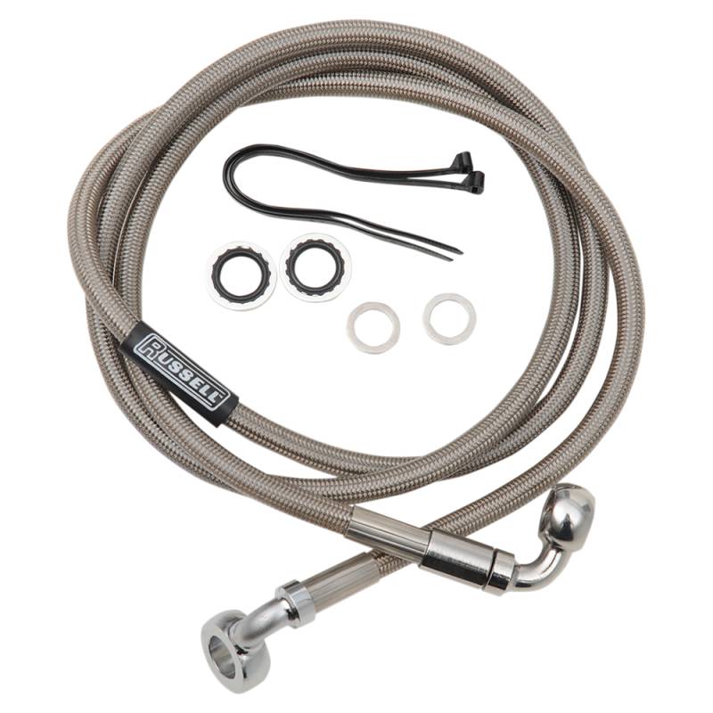 Russell Pro Swivel Universal Brake Hose - Stainless Steel - 7/16in.,90 Degree,Upper Banjo - 50in. Length - R08979