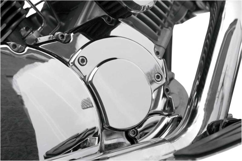 Replace the branded stock right-hand engine cover with one of these chromed billet aluminum covers