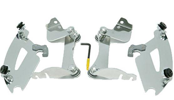 Custom fit, model-specific mounting kits feature Memphis Shades exclusive Trigger-Lock mounting systemon and off without tools, or swap out with Memphis Fats/Slim windshields, Sportshields or Batwing Fairing by purchasing a plate-only mount kit