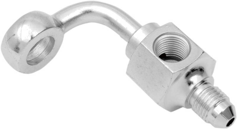Drag Specialties 3/8in. Banjo x AN-3 Male 90deg. Short Brake Fitting with Brake Light Switch Mount - 304