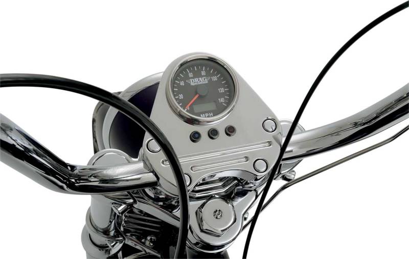 Drag Specialties Programmable Mini Electronic Speedometer with Odometer/Tripmeter - 2.4in. - Polished/Black Face - 21-6893DSNU