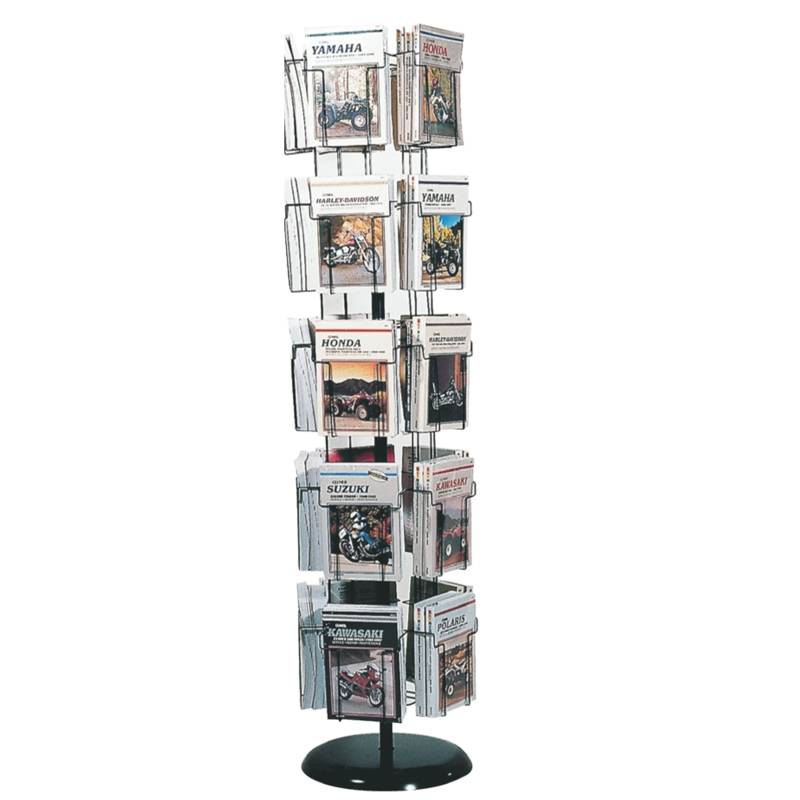 Two display options, 20 pieces of 7 x 10 manuals plus back up stock with one rack or 40 pieces of 7 x 10 manuals plus back up stock with two racks