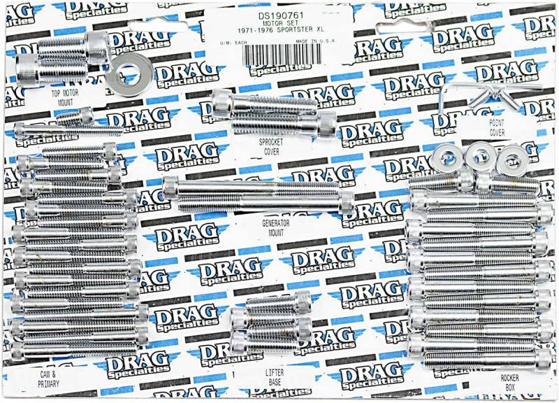Sets contain socket-head bolts for cam, primary, generator, sprocket, rocker box, top motor mount, lifter base, point or magneto cover