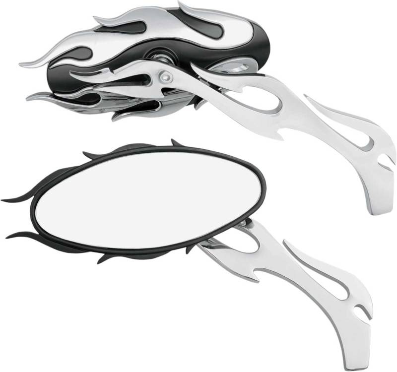 Drag Specialties Flame Oval Mirror - Chrome/Black Finish - 0640-0483