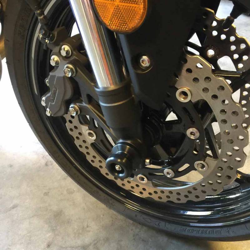 Shogun Front Axle Sliders also help provide additional protection for your front axle, front axle nut, fork bottoms, and brake calipers