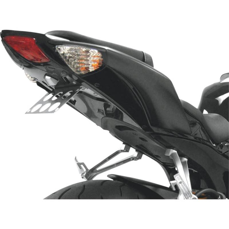 Quality, all-stainless-steel kits move the turn signals up and in and relocate the license plate light on most models