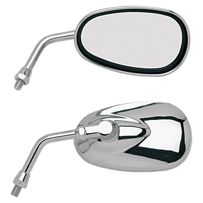 Great-looking, short-stemmed, chrome-plated mirrors designed with cruisers in mind
