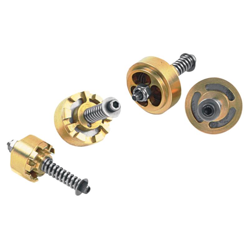 Tunable valves sit on top of damping rods; held in place by the main springs