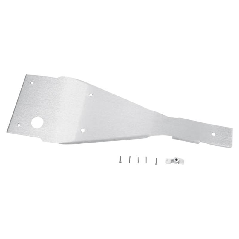 Precision-formed skid plate wraps around frame tubes for maximum protection