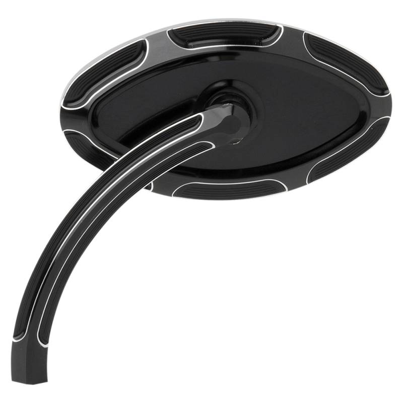Stylish forged billet mirrors heads feature a stainless steel pivot that is pressed into each mirror stem. Hidden triangulated spring plate is mounted behind the convex glass that is guaranteed never to loosen or vibrate out of adjustment
